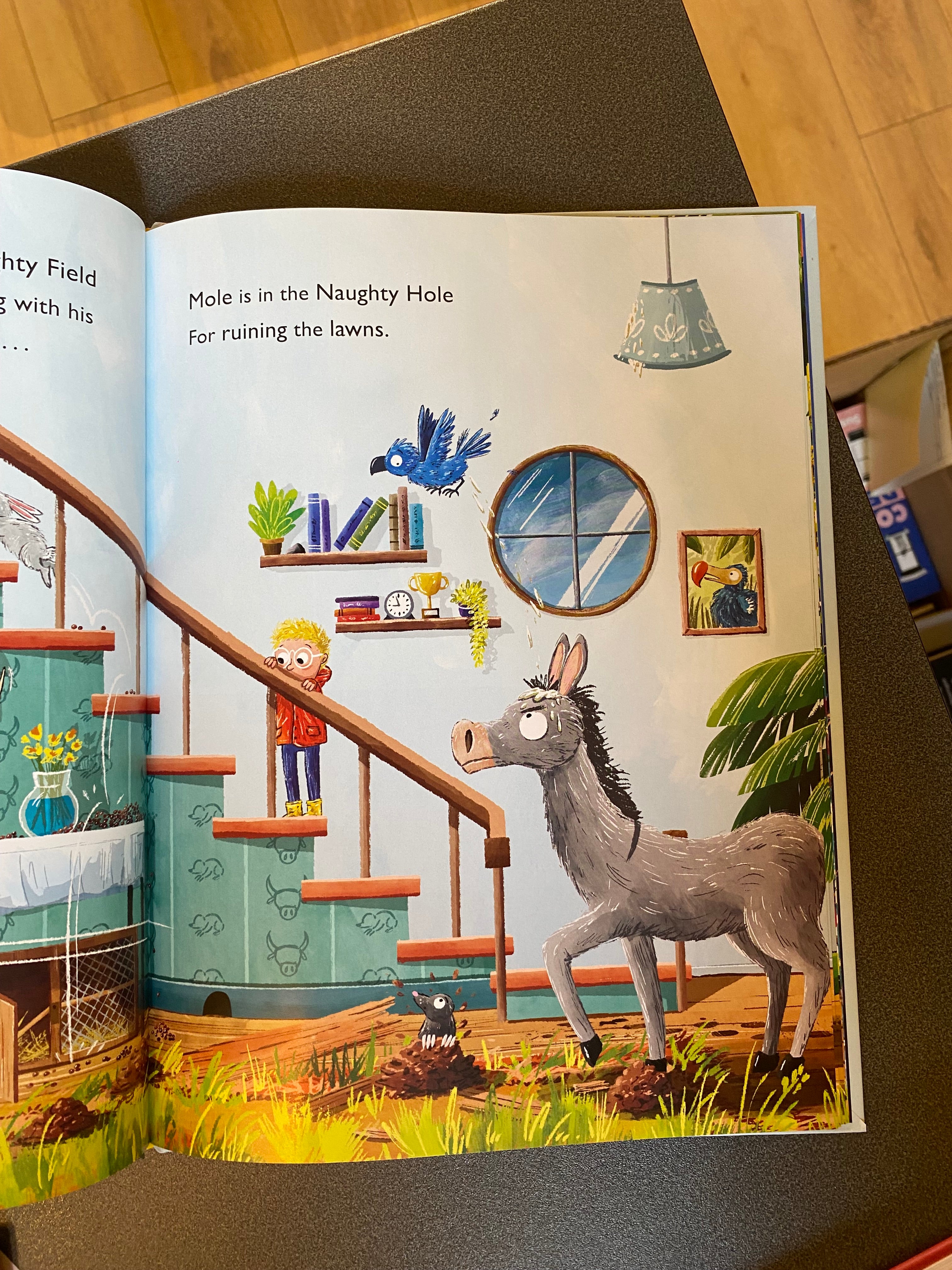 A playful and chaotic riot of animal naughtiness from picture book master Jeanne Willis. Nigel’s done a naughty thing, and he’s giving it some thought in a quiet spot. But it gets hard to focus as he quickly becomes surrounded by wild, animal naughtiness! Mole has been ruining the lawns, Bull’s been charging around with his horns .